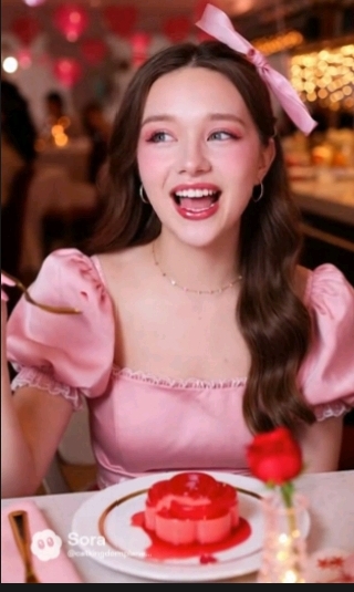 ที่โต๊ะด้านหน้า หญิงสาววัยรุ่นในเดรสชมพู แต่งหน้าโทนหวาน นั่งรออย่างตื่นเต้น เมื่อของหวานถูกเสิร์ฟ เธอชิมคำแรกก็ถึงกับตาโต เอามือทาบแก้มแล้วอุทานเสียงดังว่า “oh! My God!” ความอร่อยหวานละมุนทำให้ทั้งร้านเต็มไปด้วยเสียงฮือฮาและหัวใจลอยฟุ้งทั่วฉาก
