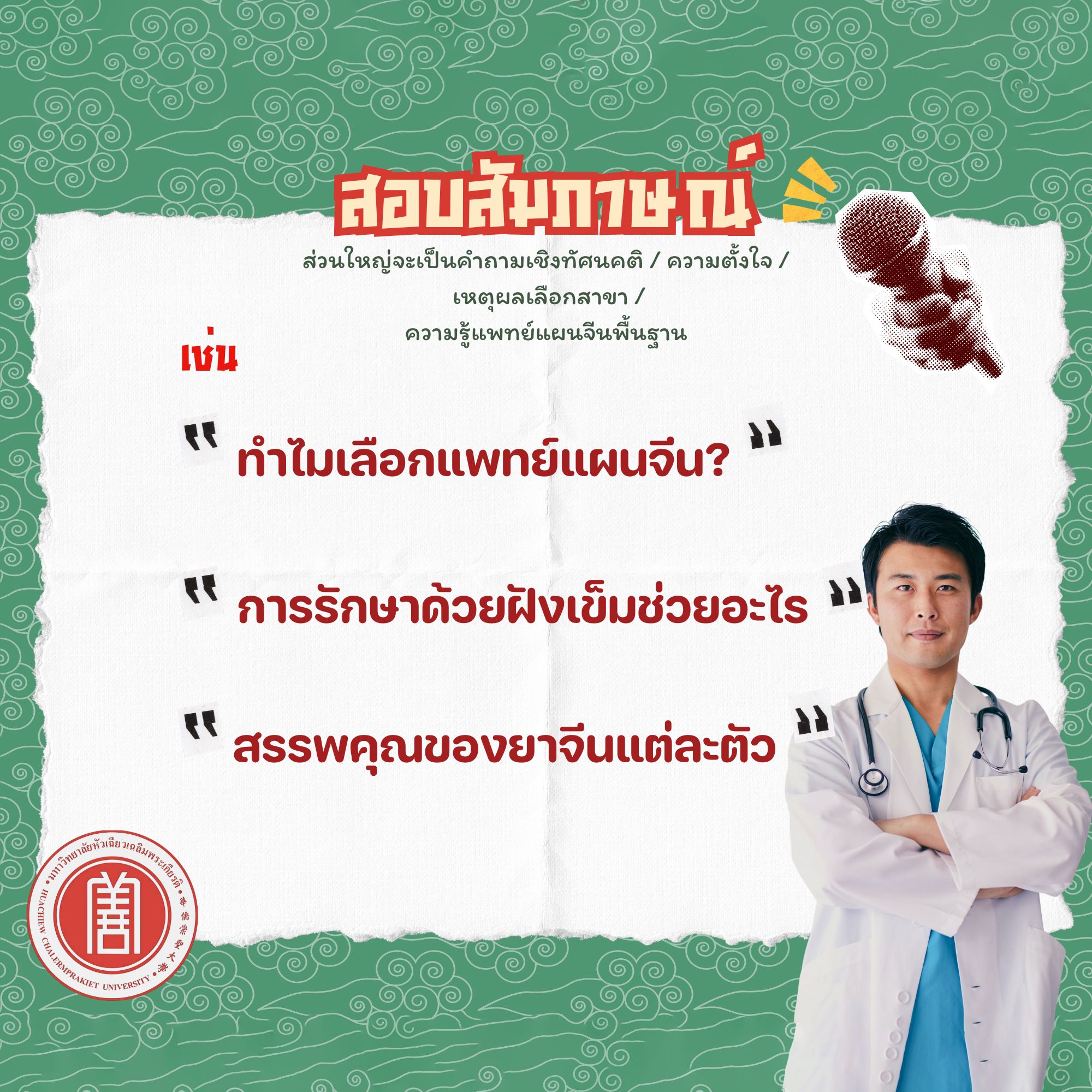 เตรียมคำตอบให้ดี: "ทำไมถึงเลือกเรียนที่นี่?" และ "เข้าใจบทบาทหมอจีนแค่ไหน?"