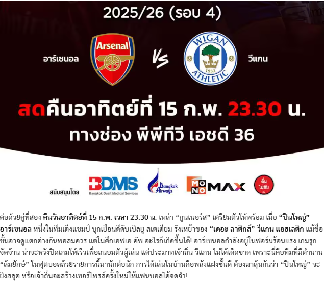 PPTV จะประชาสัมพันธ์ทั้งที ดันบอกว่าอาร์เซน่อล ไปเยือน วีแกน ถ้าวีแกนได้เล่นในบ้านก็ดีสิ