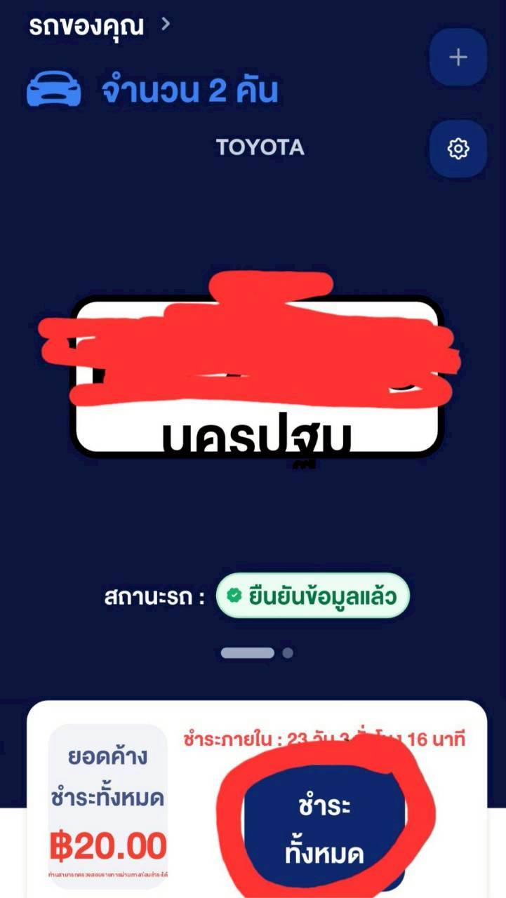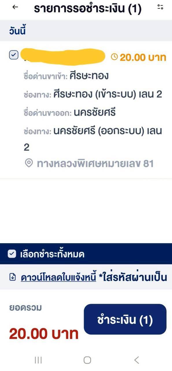 2.ดูรายการยอดชำระ สามารชำระได้ภายใน 1เดือน หลังออกด่านมา