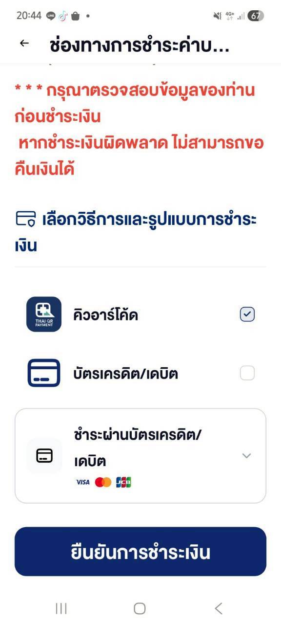 4.กดชำระเงิน มีทั้งผ่านบัตรเคดิต และ คิวอาร์โคตธนาคารของแต่ละคนที่มี
