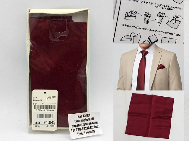 รหัสสินค้า NE0470 : (ของใหม่) ผ้าเช็ดหน้าสูทญี่ปุ่น กว้าง12นิ้ว ยาว12นิ้วค่ะ ขาย 150บาทค่ะ (ฟรีค่าจัดส่งแบบลงทะเบียน)