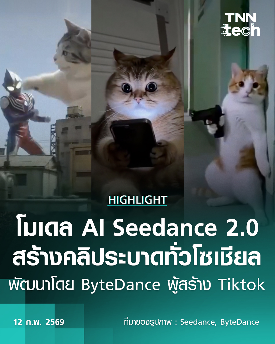 โมเดล AI จาก Seedance 2.0 สร้างคลิปวิดีโอระบาดทั่วโซเชียล ผลงานทีม ByteDance ผู้สร้าง Tiktok