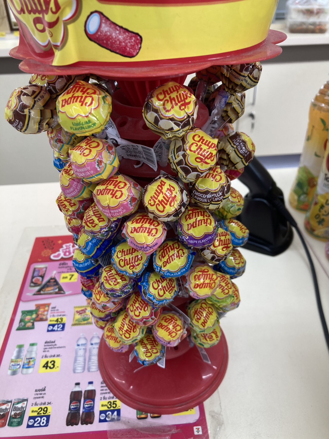 ได้ยกออกมาให้ ลูกอมจุ๊บเปอร์จุ๊บ 2 แถม 2 รวม 4 อัน 10 บาท 8 อัน 20 บาท แต่กัมบอลไม่ได้ซื้อมาเยอะ เลือกรสที่ชอบ เอาไว้แจกเพื่อน