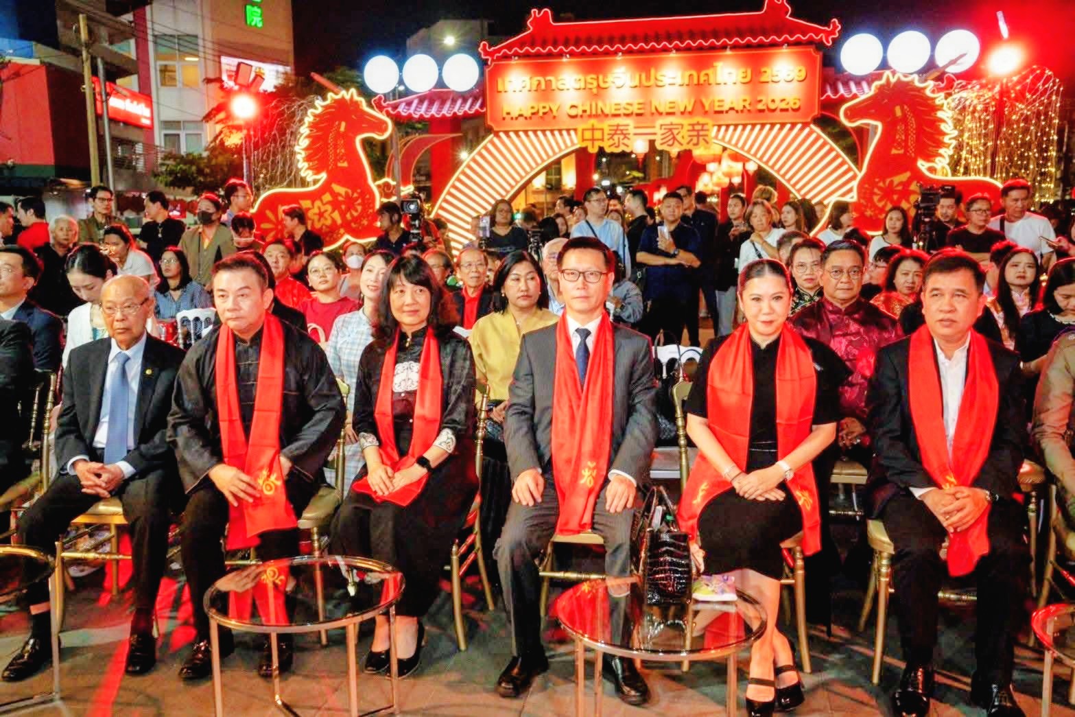 วันที่ 11 กุมภาพันธ์ 2569 นางสาวฐาปนีย์ เกียรติไพบูลย์ ผู้ว่าการการท่องเที่ยวแห่งประเทศไทย (ททท.) และนายหยาง เสี่ยวหลง ที่ปรึกษาฝ่ายวัฒนธรรมสถานเอกอัครราชทูตสาธารณรัฐประชาชนจีนประจำประเทศไทย ร่วมเป็นประธานในพิธีเปิดประดับตกแต่งไฟในเทศกาลตรุษจีน ประจำปี 2569 พร้อมด้วยพล.ต.ต.ชัยกฤต โพธิ์อ๊ะ ผู้บังคับการตำรวจนครบาล 6 พล.ต.ต. ดนุ กล่ำสุ่ม ผู้บังคับการตำรวจท่องเที่ยว 1 นายธนาเดช จันทร์แก้ว ผู้อำนวยการเขตสัมพันธวงศ์ นายพินิจ กาญจนชูศักดิ์ สมาชิกสภากรุงเทพมหานคร เขตสัมพันธวงศ์ นายวิศิษฏ์ ลิ้มประนะ ประชาคมนักธุรกิจย่านเยาวราช นายวิรัช เมฆสัมพันธ์ ผู้อำนวยการฝ่ายบริหารโครงการพิเศษ บริษัท ไทยเบฟเวอเรจ จำกัด (มหาชน) และคณะผู้บริหาร ททท. ให้เกียรติร่วมงาน เฉลิมฉลองความสัมพันธ์อันแน่นแฟ้นทางการทูตไทย-จีน ปีที่ 51 ณ ซุ้มประตูเฉลิมพระเกียรติ ๖ รอบพระชนมพรรษา ถนนเยาวราช กรุงเทพมหานคร