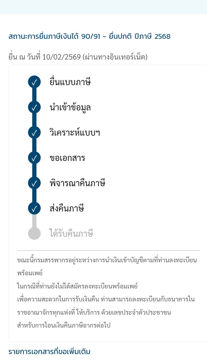 ขึ้นสถานะส่งคืนภาษี มา 4 วันทำการแล้ว แต่เงินยังไม่เข้าบัญชี