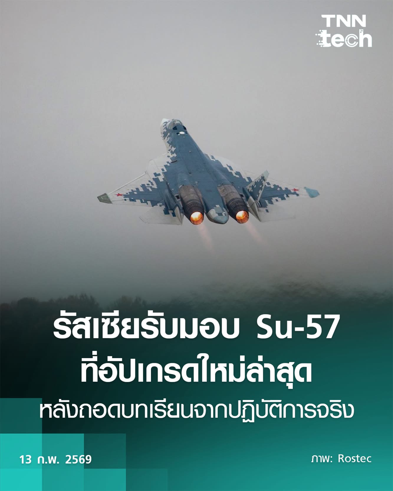 รัสเซียรับมอบ Su-57 เครื่องบินรบยุคที่ 5 รุ่นอัปเกรดใหม่เพิ่ม หลังทยอยส่งมอบตามคำสั่งซื้อทั้งหมด 76 ลำ