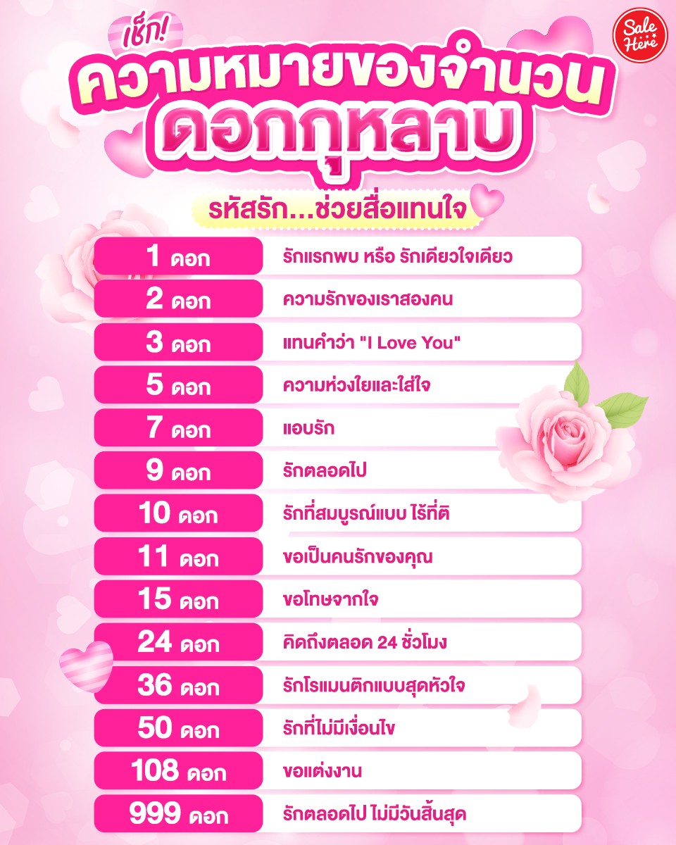 📣 รู้ไหมว่ากุหลาบแต่ละดอกมีความลับซ่อนอยู่! 🌹✨ วันนี้ชวนมาเช็กรหัสรักผ่านจำนวนดอกกุหลาบ สื่อแทนใจในช่วงเทศกาลแห่งความรัก! ไม่ว่าจะ 1 ดอกที่บอกว่ารักเดียว หรือ 999 ดอกที่สัญญาว่าจะรักตลอดไป 💐📖 แล้วจำนวนกุหลาบในมือแต่ละคนมีความหมายว่าอะไร? มาดูคำตอบกันเลย! ❤️