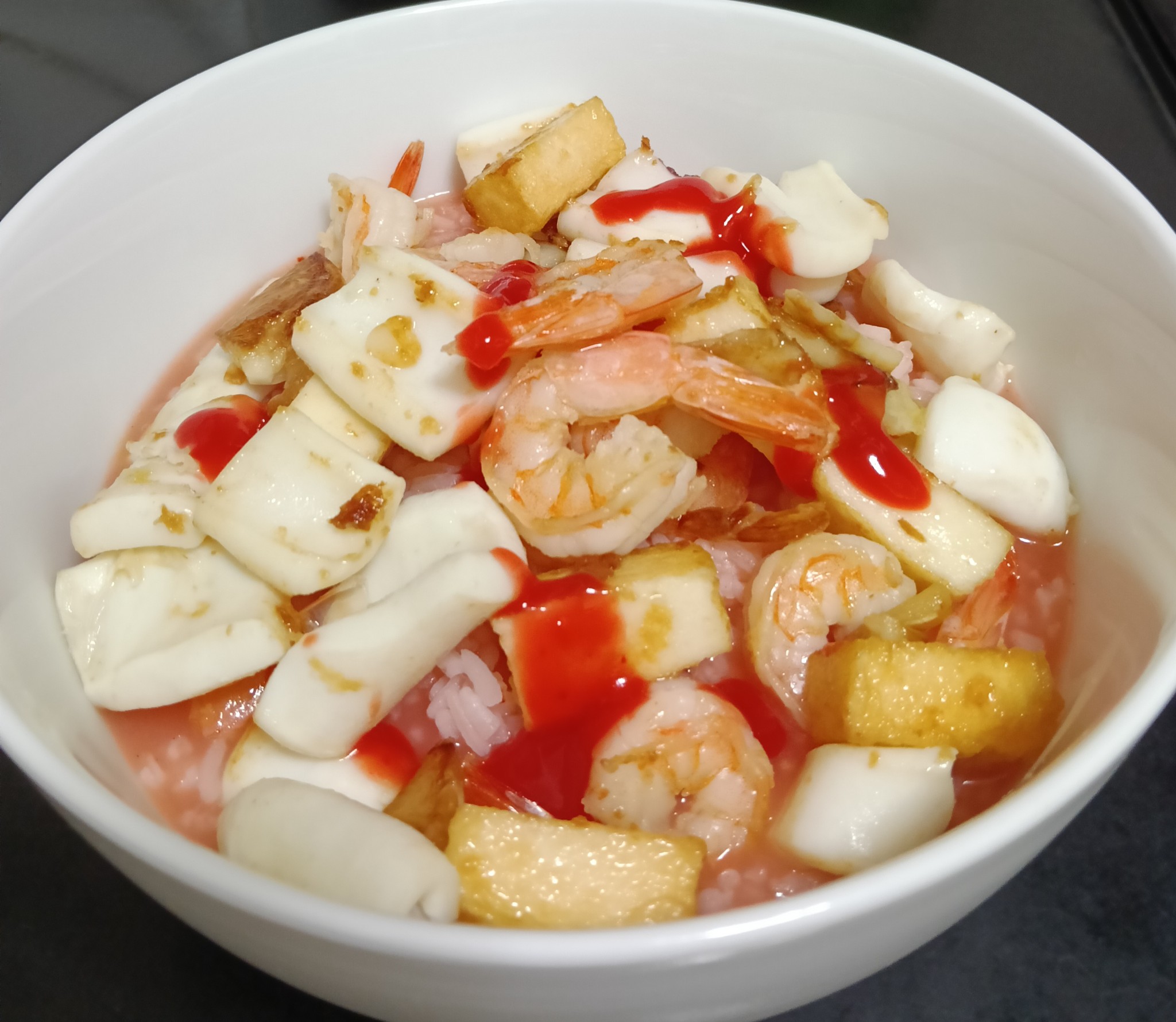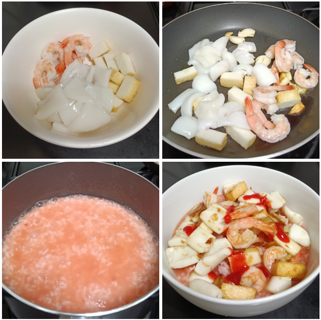 🌹🌹🌹🌹ข้าวต้มทะเลสีชมพู หรือข้าวเย็นตาโฟทะเล 🦑🦐🍤🦈🦈💕💞💓💗💖💝