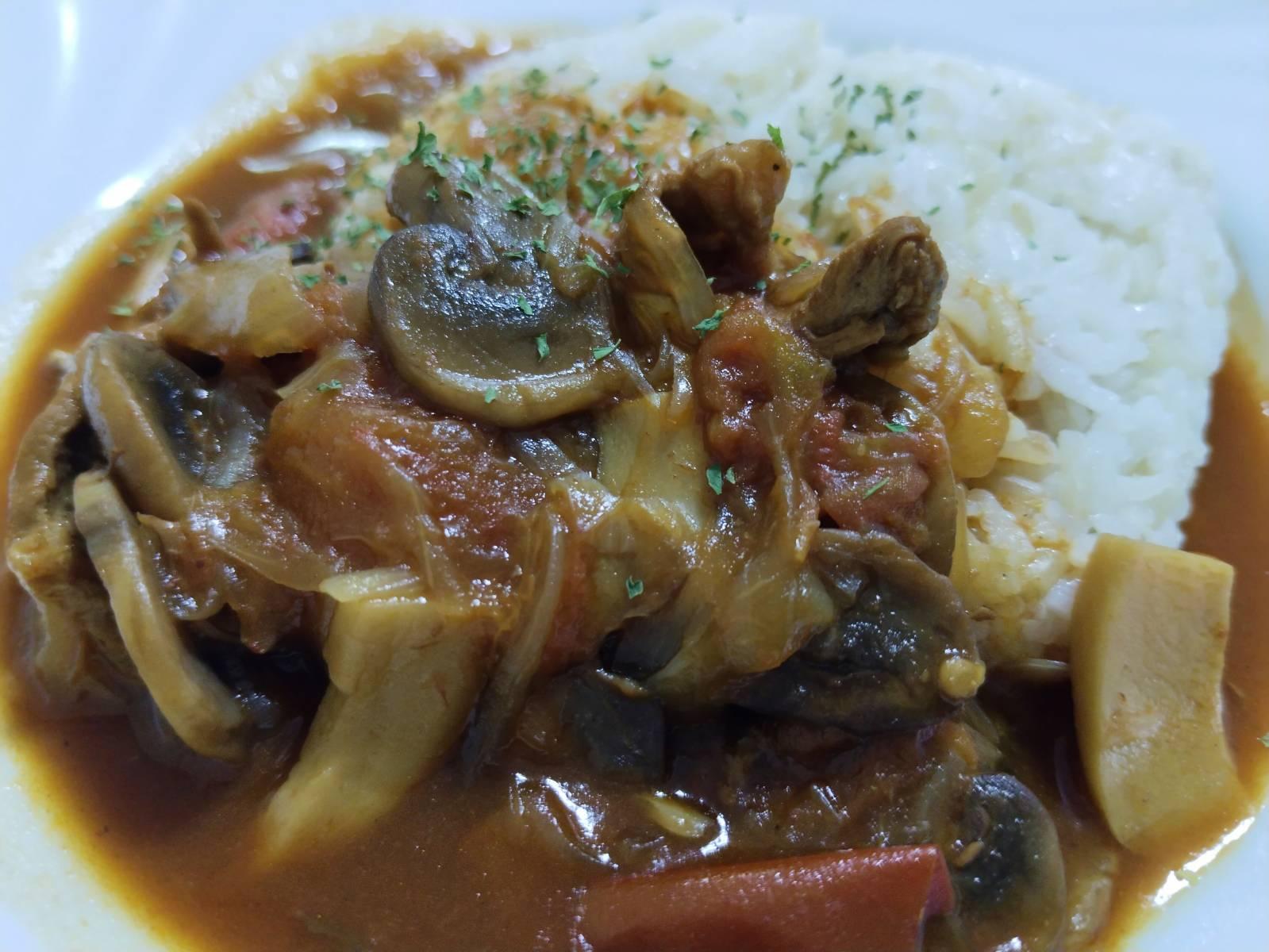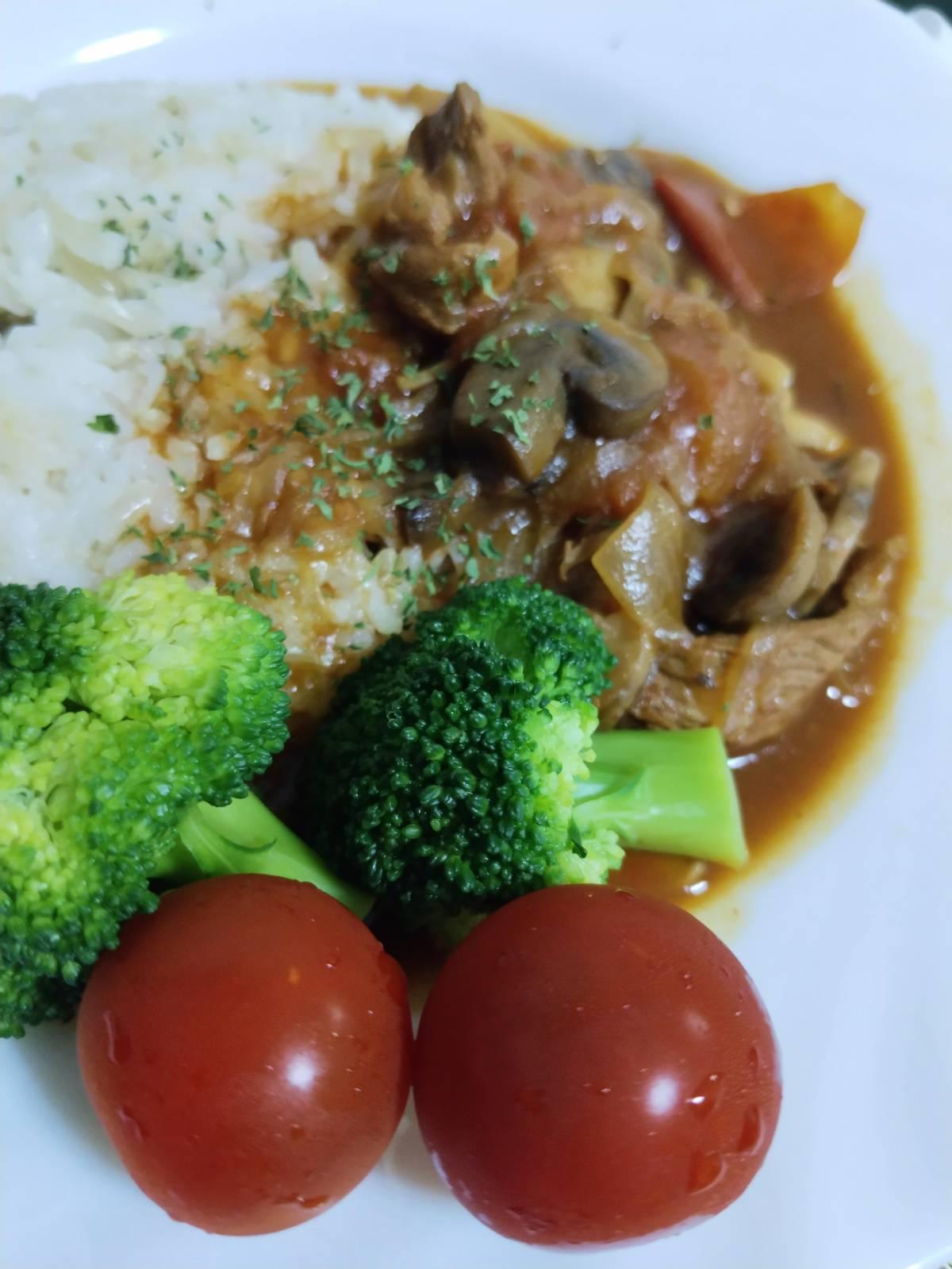 ใส่ฮายาชิซอส ครึ่งกล่อง เนย ปรุงรสด้วยเกลือ น้ำตาลตามชอบ เสิร์ฟบนข้าวสวยร้อนๆ โรยใบพาสรี่ ทานกับผัก อร่อยมันวัว รสเปรี้ยวอมหวานมะเขือเทศ