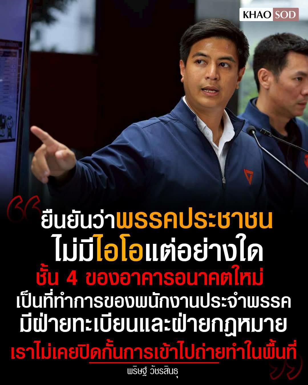 ขอย้ำว่าพรรคประชาชนไม่ได้มี IO แต่อย่างใด ทั้งนี้ชั้น 4 ของอาคารอนาคตใหม่ เป็นที่ทำการของพนักงานประจำของพรรคประชาชน มีฝ่ายทะเบียนและฝ่ายกฎหมาย เราไม่เคยปิดกั้นการเข้าไปถ่ายทำในพื้นที่