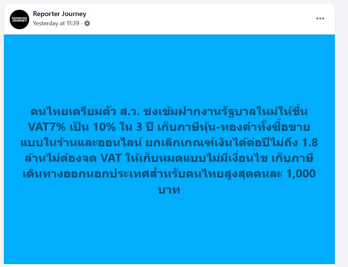 ก๊ากๆๆๆ ชงขึ้น VAT เป็น 10% รีดภาษีออนไลน์ หุ้น ทองคำ เดินทางต่างประเทศ และอื่นๆ