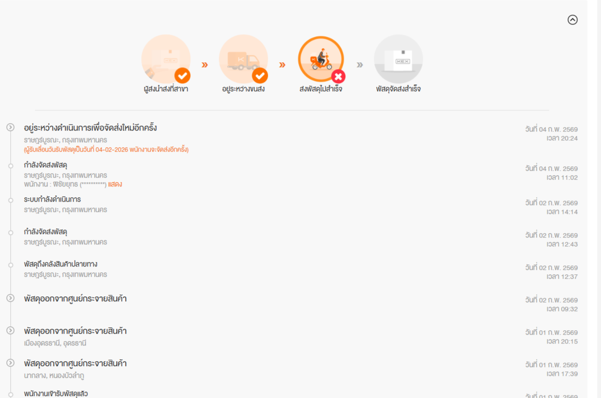 ราษฎร์บูรณะ แต่พนักงานในนั้นบอก พนักงานที่ไปส่งของยังไม่เอาของกับเข้าคลังแล้วหายไปไหนไม่รู้และเหมือนจะไม่ใช่พนักงานประจำ หลังจากนั้นถึงจะมีแอดมินค่อยทักมาประสานงานให้กูยังเหมือนเดิม ไม่รู้ว่าใช่แอดมินของ KEX จริงๆมั้ย แต่ถามเค้าตลอดว่าของ กลับเข้าคลังมั้ย? ของหายมั้ยเค้าก็ตอบ พัสดุไม่ได้หาย 14/02/69 กลับไปที่คลังราษฎร์บูรณะอีกครั้งเพื่อจะไปเอาของ สรุปพนักงานที่ส่งของผมหายไปเลยพร้อมกับของๆผมเค้าจึงแนะนำให้ทำเรื่องเคลมพัสดุ แล้วที่บอกว่าพัสดุไม่หายคือยังไงแบบนี้เรียกโกหกผู้บริโภครึป่าวครับ ของก็ไม่ได้ เสียเวลา เสียความรู้สึก คว..........
