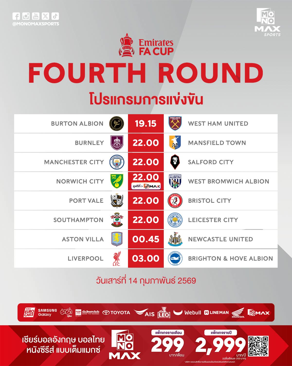 📺 พีพีทีวี ยิงสด! 🔴⚽🏆🏴 ศึก เอฟเอ คัพ 2025/26 สุดสัปดาห์รับ "วาเลนไทน์เดือด" ❤️🔥