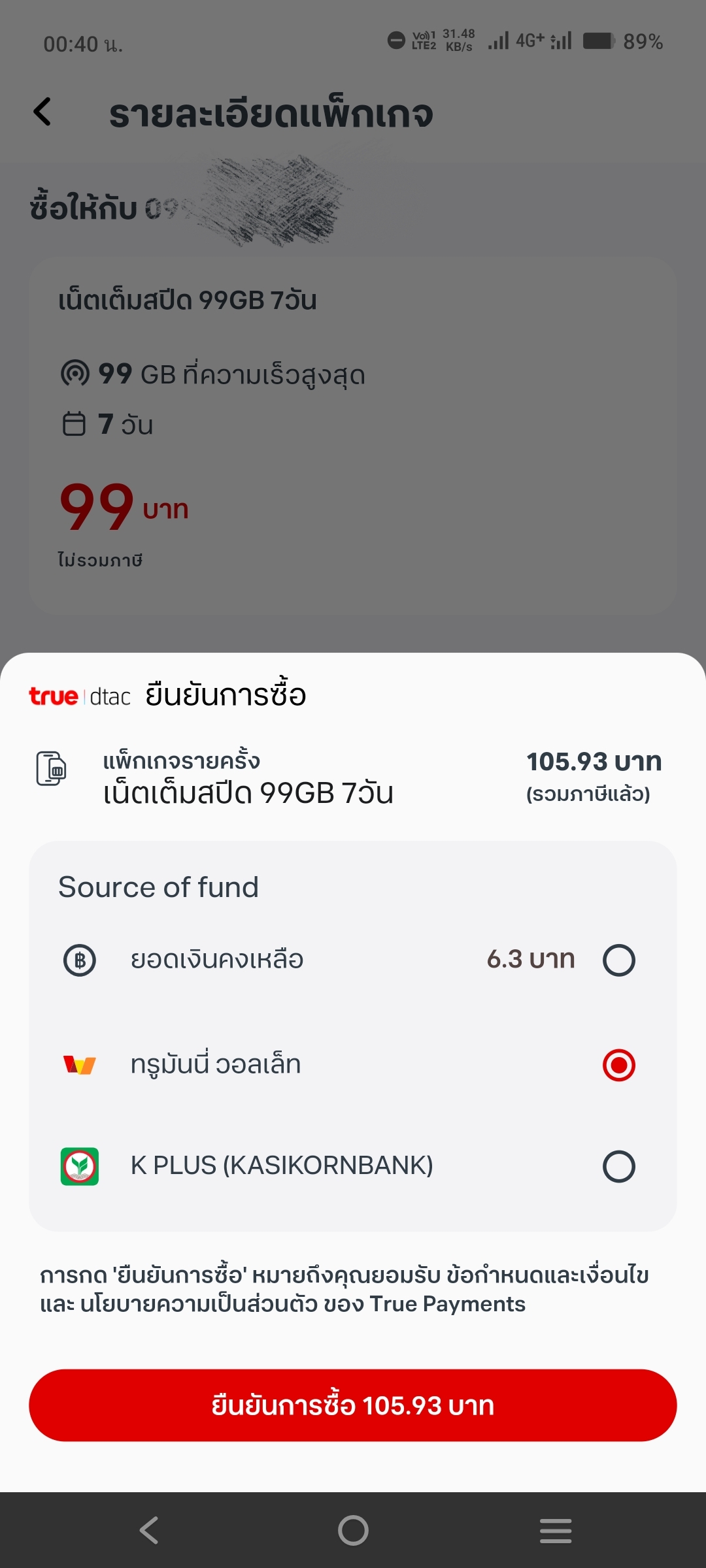 เติมเงินแล้วโดนหักแพ็กเกจอื่นต้องทำไร ทรู