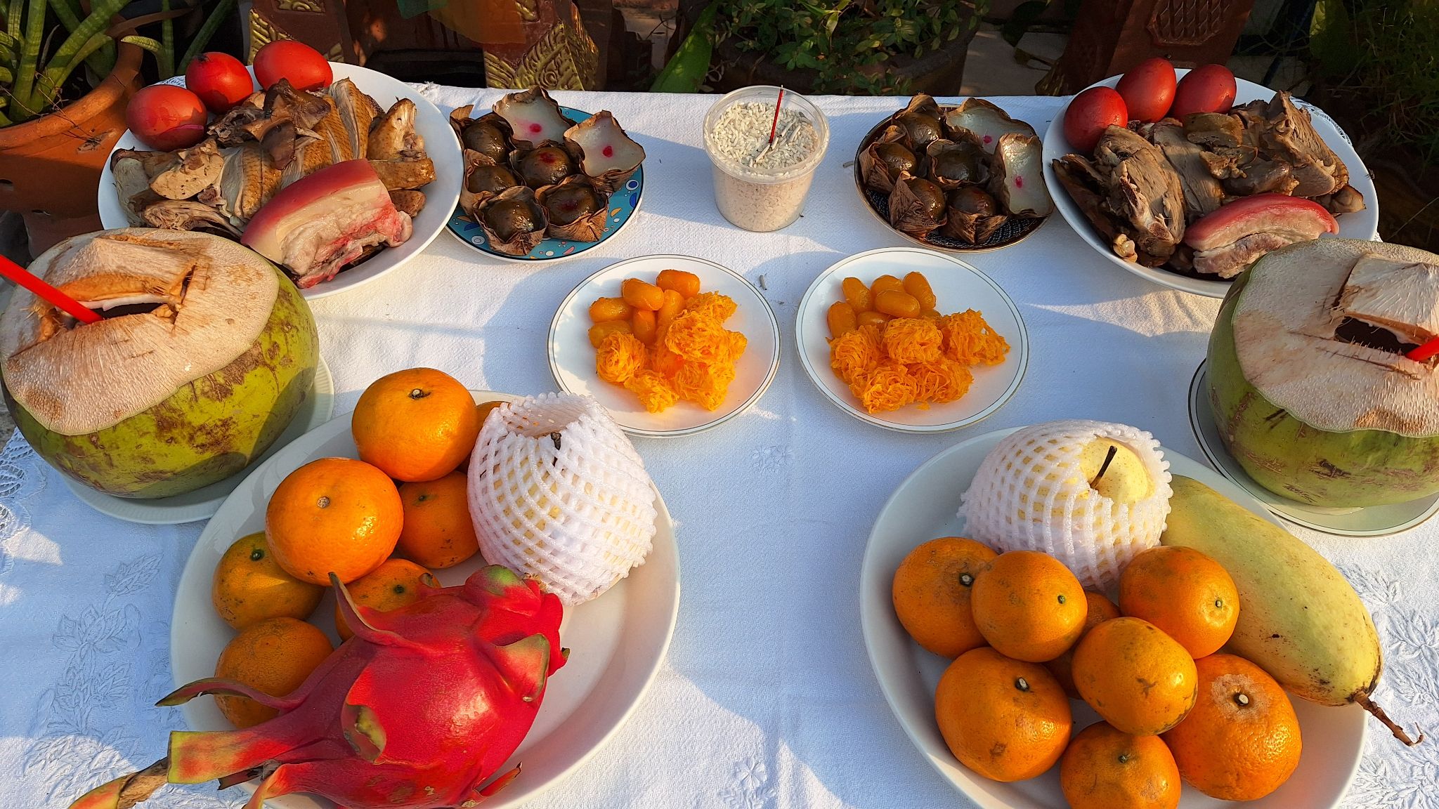 ของไหว้มีเยอะ บ้านมีสามคน ถ้าเราเอาของไหว้แล้ว ไปให้แก่เพื่อนบ้าน