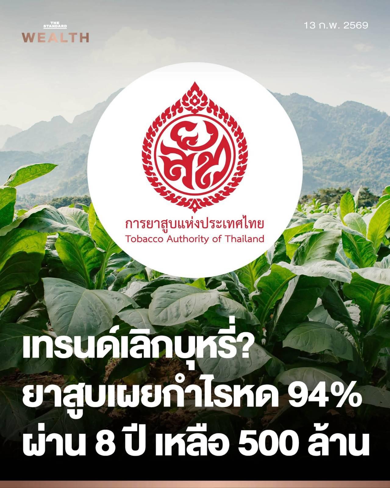 ก่อนปี 2560 การยาสูบเคยมีรายได้ 68,175 ล้านบาท และกำไรสุทธิกว่า 9,343 ล้านบาท ขณะที่ผลการดำเนินงานปี 2568 รายได้รวมลดลงมาอยู่ราว 31,000 ล้านบาท และกำไรลดลงมากกว่า 94% จากช่วงพีคในอดีต เหลือเพียง 504 ล้านบาท