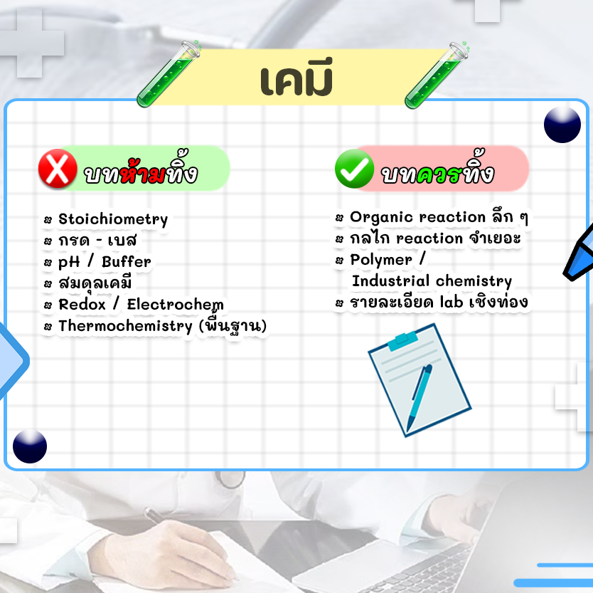 - เคมี: อย่ามัวหลงทางในแล็บ ฟาดคะแนนสมดุลเคมี และ Redox ให้เรียบ บทนี้แหละตัวช่วยชีวิต