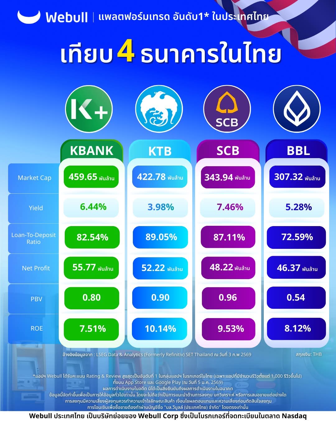 เทียบ 4 หุ้นธนาคารใหญ่ของไทย 🏦📍