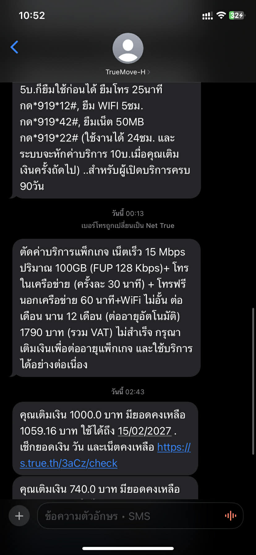 ตอนแรกเห็น SMS แจ้งว่าตัดเงินไม่ได้ เราก็เอ่อลืมเลยว่าจะ เน็ตจะครบรอบปี เมื่อคืนได้เงินมาก็เลยเติม พอเช้ามาดูอ้าวไม่ตัด สายๆก็ยังไม่ตัด