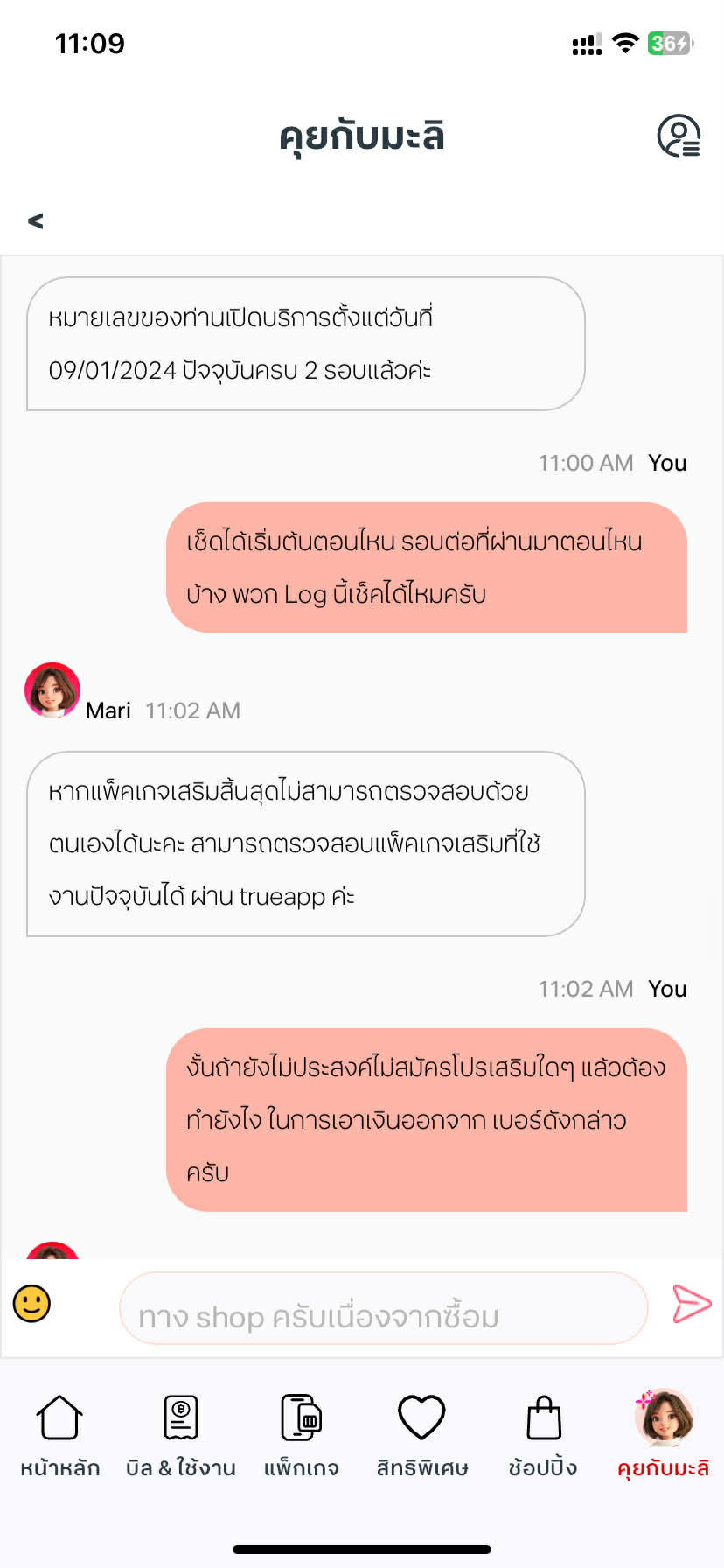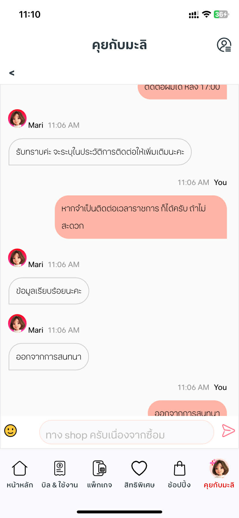 ทักไปถาม จนท ใน app