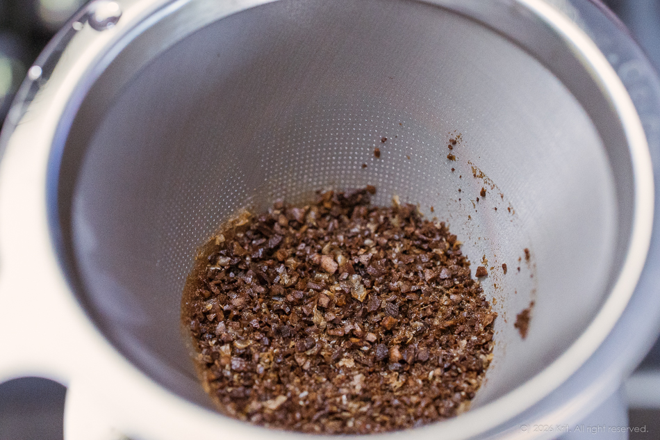 ผมใช้กาแฟคั่วอ่อนที่โรงคั่วกาแฟแถวบ้าน(คั่วมาแล้วประมาณ 5-6 วัน) บดจาก hand coffee grinder ที่ระดับ 38/54 clicks ตามคู่มือก็หยาบระดับหนึ่ง สัดส่วนกาแฟผม Google เอาได้ความว่า ถ้าต้องการ drip กาแฟ 150ml ให้ใช้กาแฟ 10.7g กับน้ำร้อน 170-180ml ซึ่งผลลัพธิ์ก็ใกล้เคียงกับที่คำนวนไว้ครับ ผมใช้น้ำราวๆ 190ml ก็ได้กาแฟ drip แก้วแรกมา...