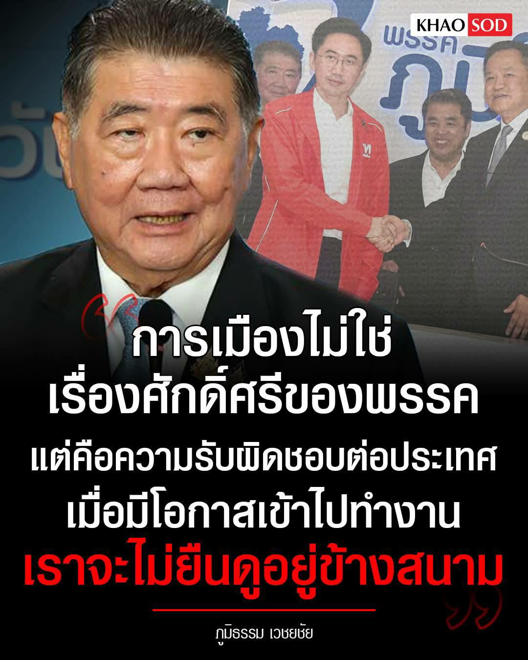 ภูมิธรรม เวชยชัย แกนนำพรรคเพื่อไทย โพสต์ข้อความผ่านเฟซบุ๊กถึงการตัดสินใจตอบรับเข้าร่วมรัฐบาลกับพรรคภูมิใจไทย