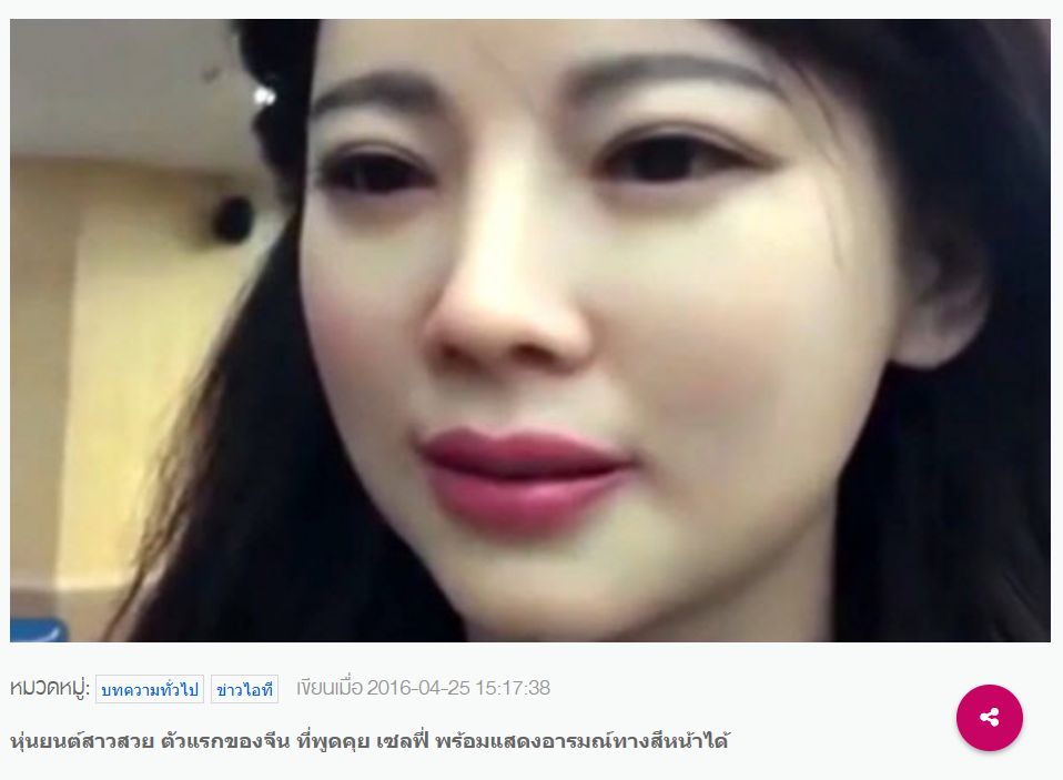 ประเทศจีน ได้สร้างหุ่นยนต์สาวสวย ที่เหมือนมนุษย์มาก มีผิวหนัง การเคลื่อนไหว ที่ดูจากภายนอกไม่รู้เลยว่า เป็นหุ่นยนต์ (ดูรูปด้านล่าง)