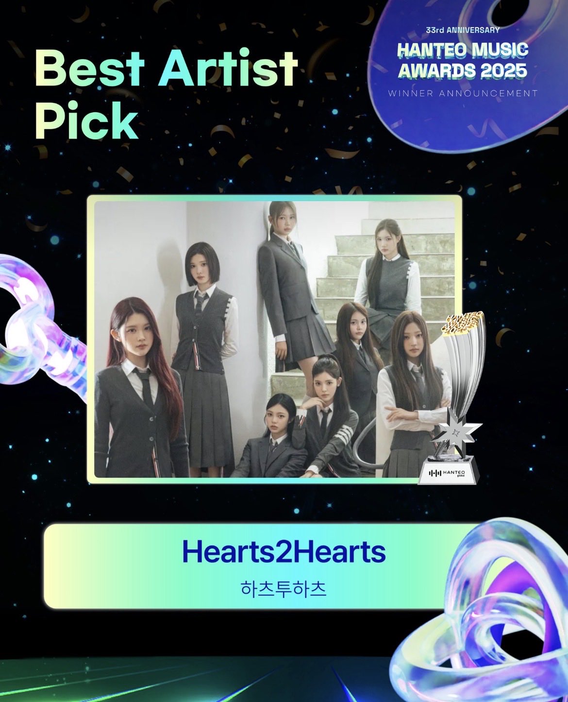 Hearts2Hearts คว้ารางวัล “Best Artist Pick” จากงาน Hanteo Music Awards 2025 🏆