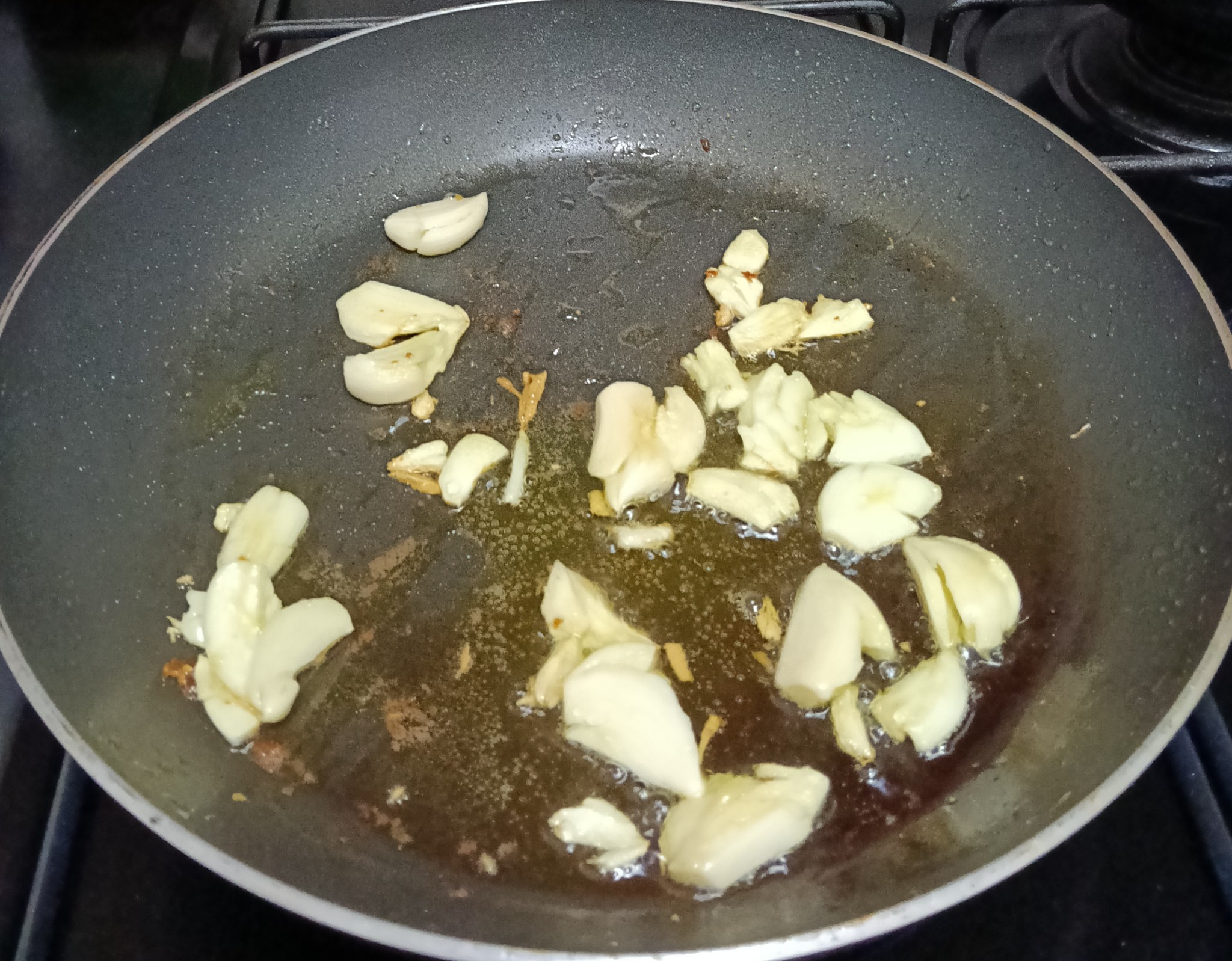 ตั้งกระทะใส่น้ำมันให้ร้อน ใส่กระเทียมลงไปผ้ดให้หอมๆ
