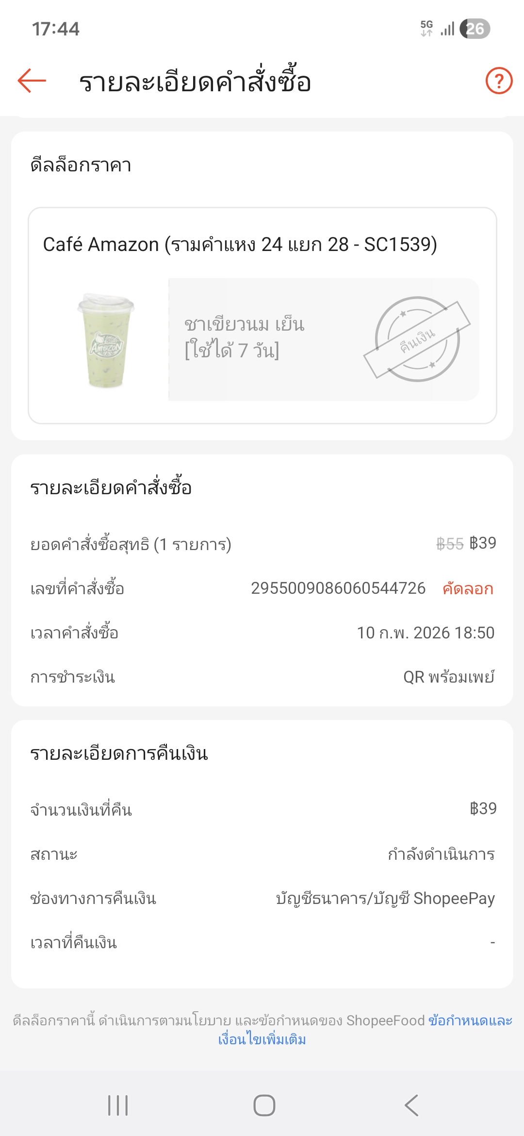 ยกเลิกสั่งซื้อดิลล็อคราคาshopeeแล้วยังไม่ได้เงินคืน จะได้เงินคืนภายในกี่วันยกเลิกไปตั้งแต่วันที่10กุมภา และชำระผ่านQRพร้อมเพลย์
