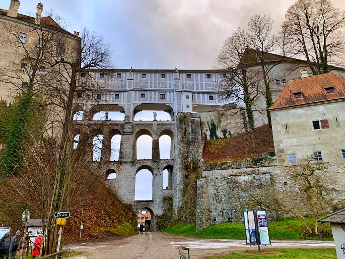 สถานที่แรกก็คือ Český Krumlov Castle ที่ตั้งอยู่บนเนินใกล้กับใจกลางเมือง สร้างขึ้นตั้งแต่ศตวรรษที่ 13 ด้วยสถาปัตยกรรมผสมผสานระหว่างโกธิค บาร็อค และเรเนซองค์ ภายในประกอบด้วยหลายส่วน เช่น ห้องโถงใหญ่, ทางเดินยาว, Castle theater, Cloak Bridge และสวนกลางปราสาท ใครมาเที่ยวเมืองนี้ต้องห้ามพลาดการถ่ายรูปมุมสองของปราสาทที่สามารถมองเห็นเมือง Český Krumlov ได้อย่างชัดเจนและสวยงามมาก (บอกตามตรงว่าบางคนอาจจะเห็นว่ามันสวยมากจนอุทานเป็นคำหยาบเลยก็ได้ 😁)