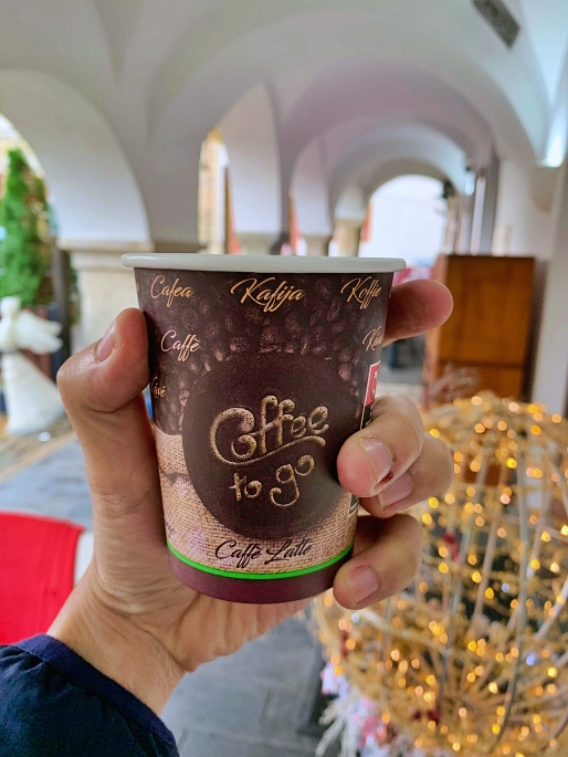 ที่ใจกลางเมืองเป็น Svornosti Square และด้วยตอนนั้นหิมะเริ่มตกและบ่ายสองเข้าไปแล้ว ผมจึงขอแวะหาอะไรลงท้อง พร้อมกาแฟร้อนๆ สักแก้วเพื่ออบอุ่นร่างกายก่อนเที่ยวกันต่อ