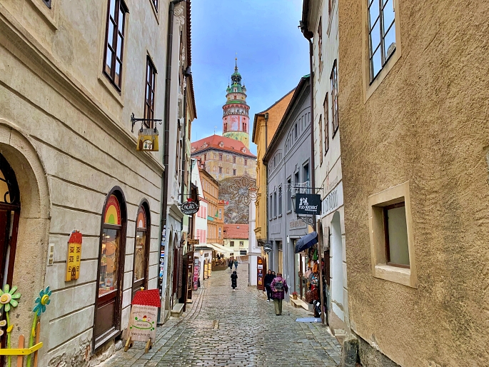 ถัดจากปราสาท Český Krumlov Castle ผมก็เดินเข้าเมืองผ่าน Latrán street ซึ่งเป็นถนนสายหลักของเมือง มีร้านอาหาร คาเฟ่ และร้านขายของฝากให้เลือกมากมาย แต่ผมขอแปะไว้ก่อน ขากลับค่อยแวะ 😆