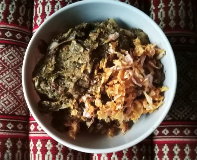 -ถ้าไม่มียอดส้มป่อยให้ใช้น้ำมะขามเปียกใส่ตอนผัดเครื่องแกงและบอน (แต่ความอร่อยสู้ยอดส้มป่อยไม่ได้นะจ๊ะ)
