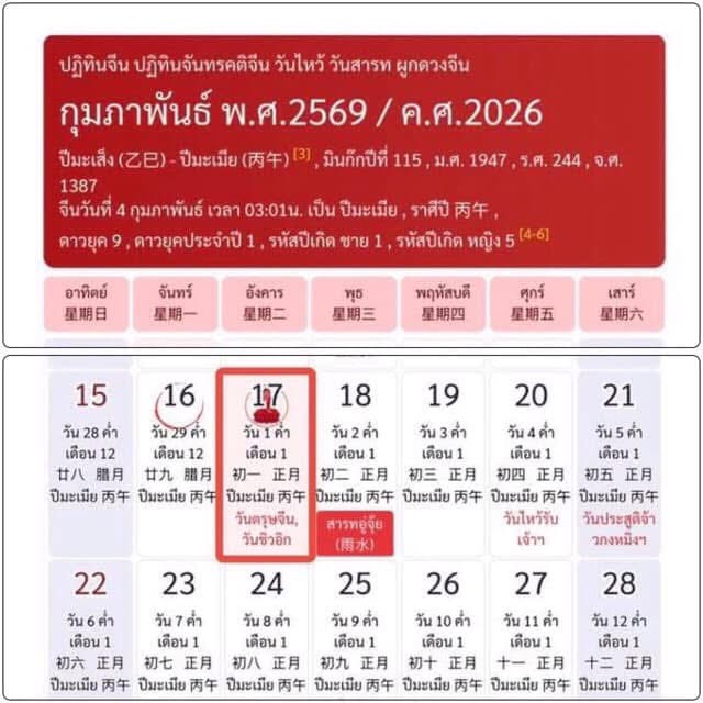 ถ้าดูตามนี้คิดว่าเริ่มปีใหม่คือวันอังคารที่ 17 กุมภาพันธ์ 2569