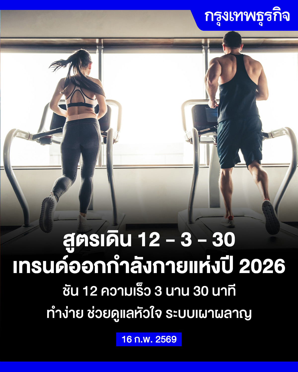 สูตรเดิน 12 - 3 - 30 เทรนด์ออกกำลังกายปี 2569 ชัน 12 ความเร็ว 3 นาน 30 นาที ช่วยดูแลหัวใจ ระบบเผาผลาญ