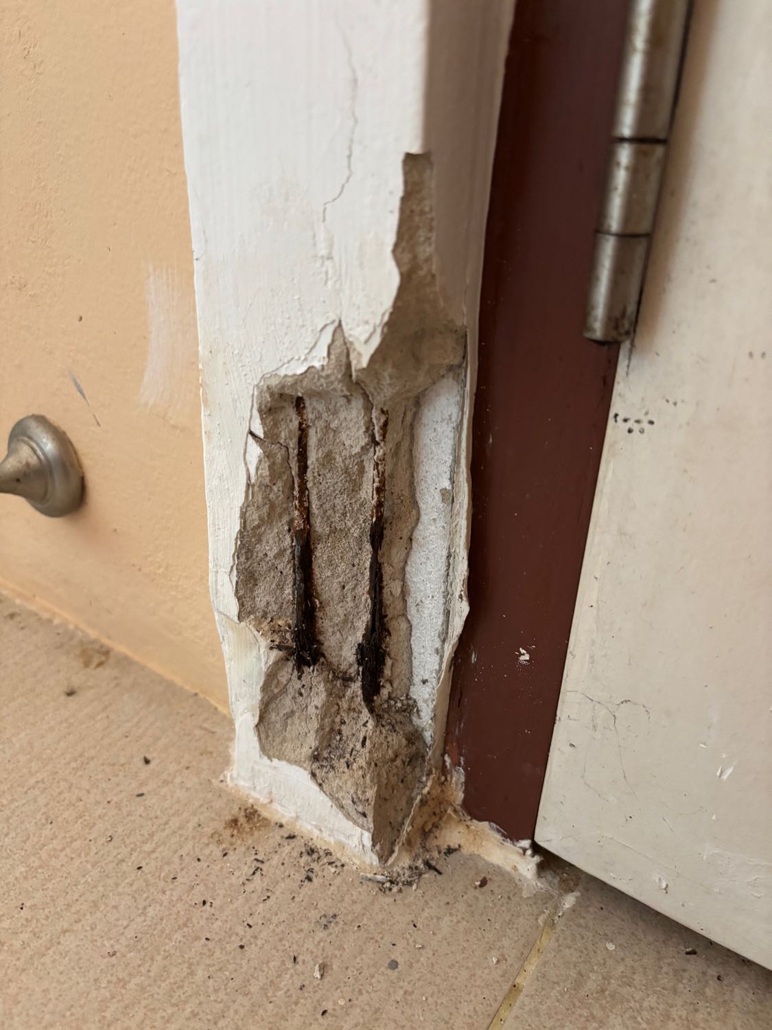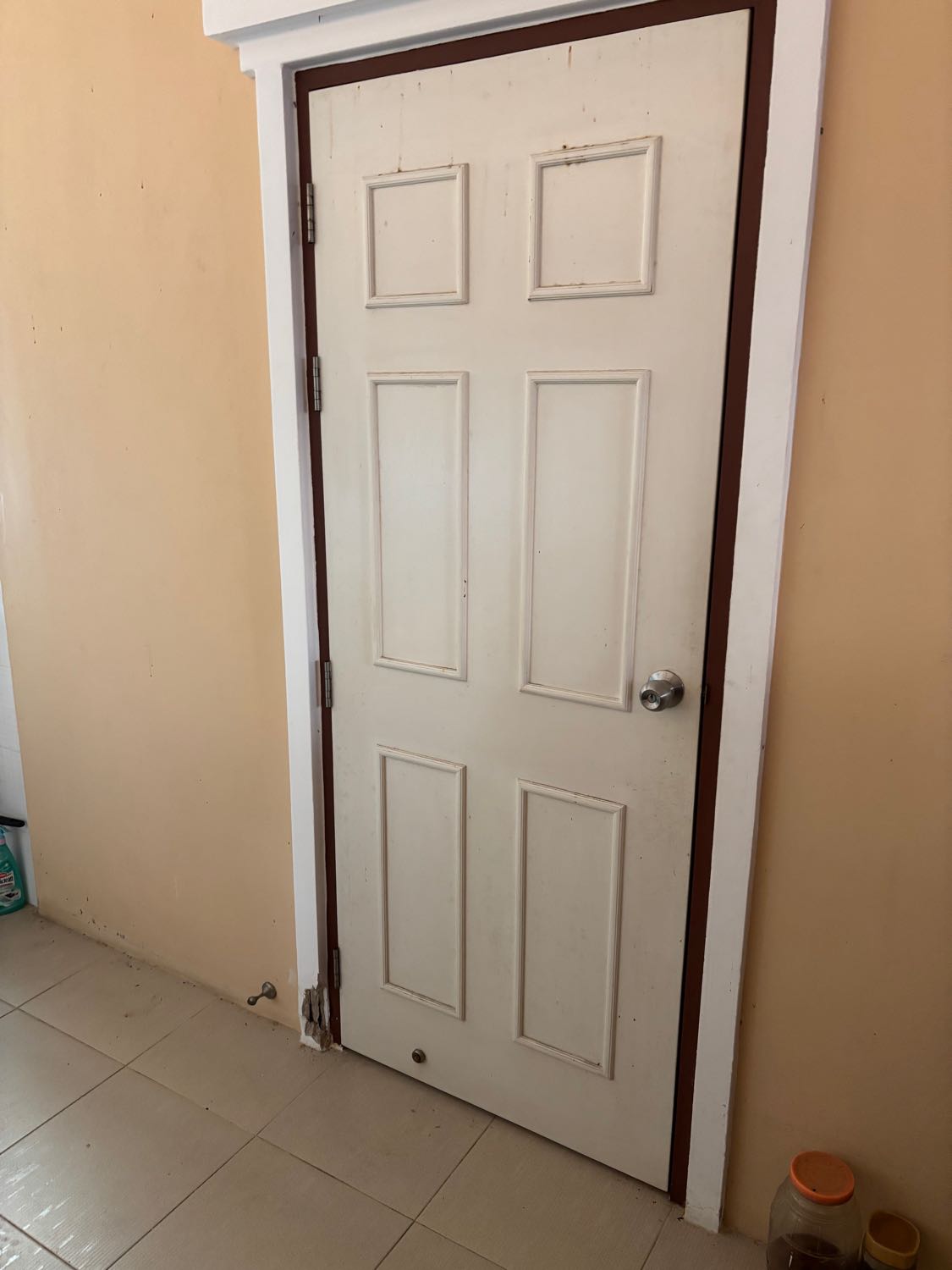 ปูนวงกบประตูครัวในบ้าน แตกหลุด แบบนี้ซ่อมอย่างไรดีครับ ใช้วัสดุอะไรเพื่อซ่อมให้ดูดีขึ้น เท่าที่ดูช่างน่าจะฉาบปั้นเป็นเหลี่ยมเพิ่มจากพื้นกำแพงเดิมด้านหลังครับ