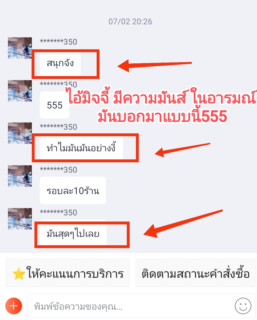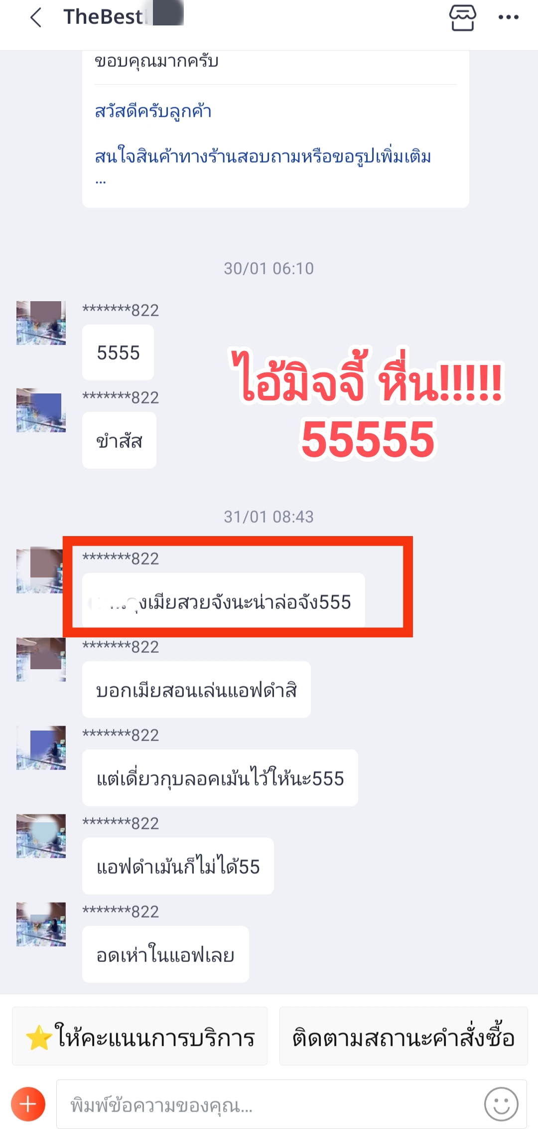 ข้อความพวกนี้ สมาชิกแจ้งมาว่า ไอ้มิจจี้ตัวนี้ มันส่งมาเอง ทางช่องแชท ของ lazada