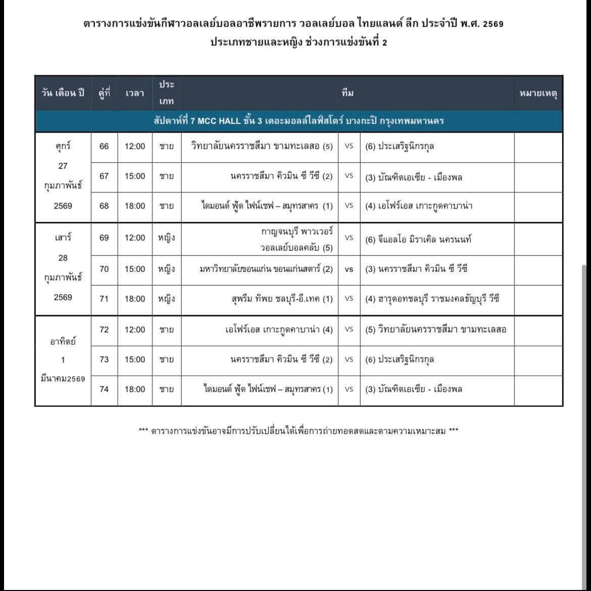 แข่งทุกวันยังกับเป็นวอลเลย์บอลโรงเรียนไปได้ ตารางการแข่งเลกสอง ไม่มีผลดีเลยทั้งต่อผู้ชมและนักกีฬา ผู้ชมก็ลำบากในการที่จะไปชมแล้วไม่ตรงกับวันหยุด นักกีฬาก็แข่งติดๆกัน บาดเจ็บ เหนื่อยล้าก็ recovery ไ