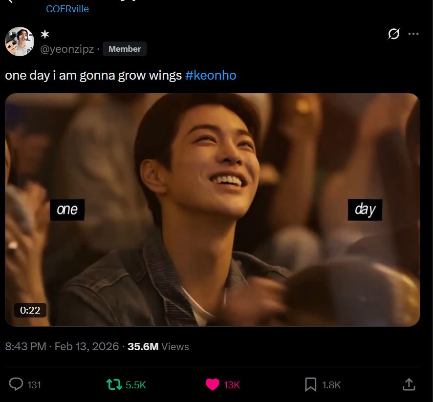 ยอดวิวคลิป "one day i am gonna grow wings" Keonho ของน้องกอนโฮโหดมาก