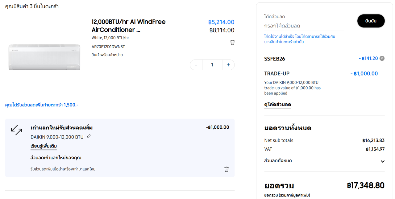 ส่วนลดแอร์ซัมซุงในเว็บ 12% คิดเป็น 141 บาทเองเหรอ จุ๋มจิ๋มเข็มเล็กมาก