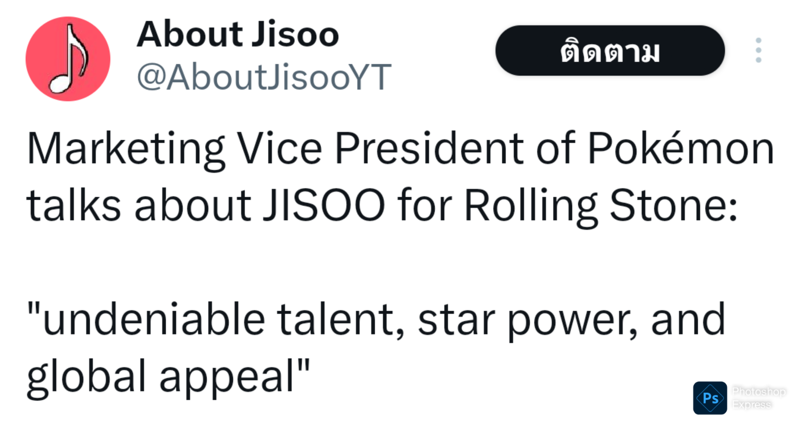 รองประธานด้านการตลาดของ Pokemon ให้นิยามถึง JISOO ว่า พรสวรรค์ที่ยากจะปฏิเสธ, Star Power และ เสน่ห์ดึงดูดระดับโลก