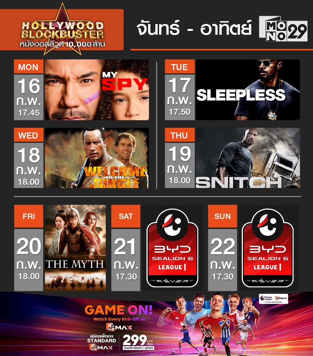 Hollywood Blockbuster หนังฮอลลีวูด 10,000 ล้าน วันที่ 16 - 22 กุมภาพันธ์ เวลา 18.00 น. ทางช่อง MONO29