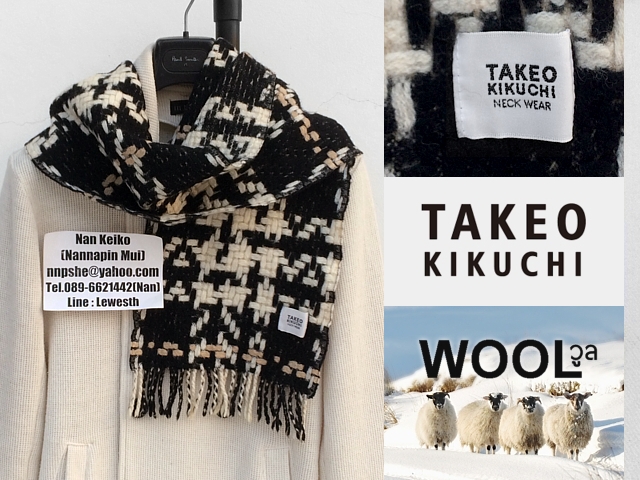 รหัสสินค้า FAB0849 : (มือสอง) ผ้าพันคอ Takeo Kikuchi กว้าง9.5นิ้ว ยาว60นิ้ว ผ้าวูลค่ะ ขาย 250บาทค่ะ (ฟรีค่าจัดส่งแบบลงทะเบียน)