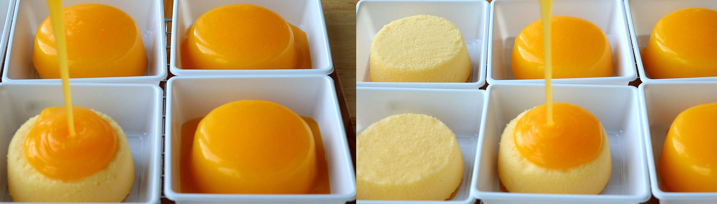 3.บีบใส่ในพิมพ์ขันข้าวเบอร์ 9 นำไปอบอุณหภูมิ 180 องศาเซลเซียสเป็นเวลา 20-25 นาที พออบเสร็จแล้วค่ำพิมพ์บนตะแกรง พักให้อุ่นลงแล้วนำเค้กออกจากพิมพ์ พักบนตะแกรงจนเค้กเย็นสนิท