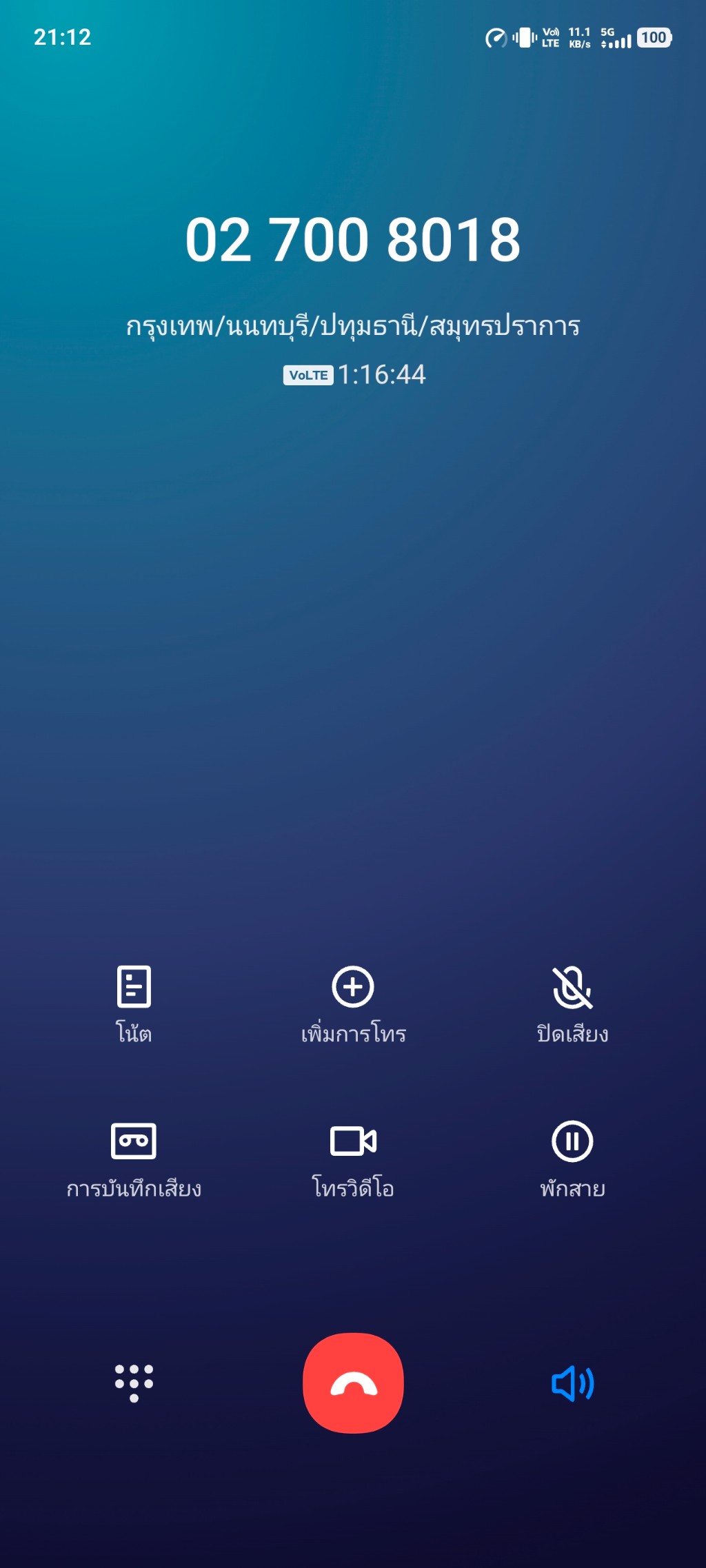 ครั้งที่ 2 โทรไปให้รอสายประมาณ 1 ชั่วโมง 20 นาที ไม่มีคนรับสาย จนต้องกดวางไปเอง