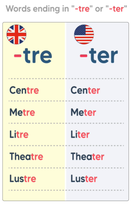 "re" ซึ่งเป็นลักษณะการเขียนแบบสำเนียงบริติช