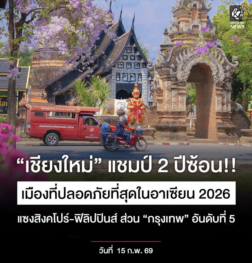 "เชียงใหม่" เมืองปลอดภัย คว้าอันดับ 1 การจัดอันดับเมืองที่ปลอดภัยที่สุดในอาเซียน 2026