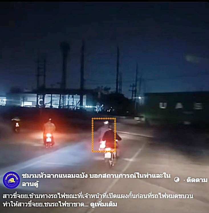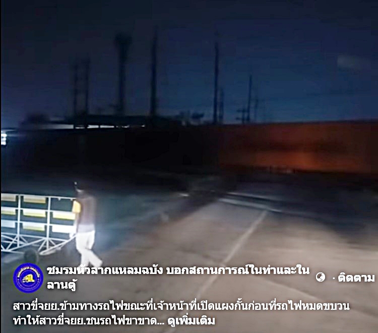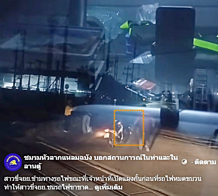 เฮ้อ ไม่รู้อะไรบดบังตา ; สาวขี่จยย.ข้ามทางรถไฟ ขณะที่เจ้าหน้าที่เปิดแผงกั้นก่อนที่รถไฟหมดขบวน ทำให้สาวขี่จยย.ชนรถไฟขาขาด